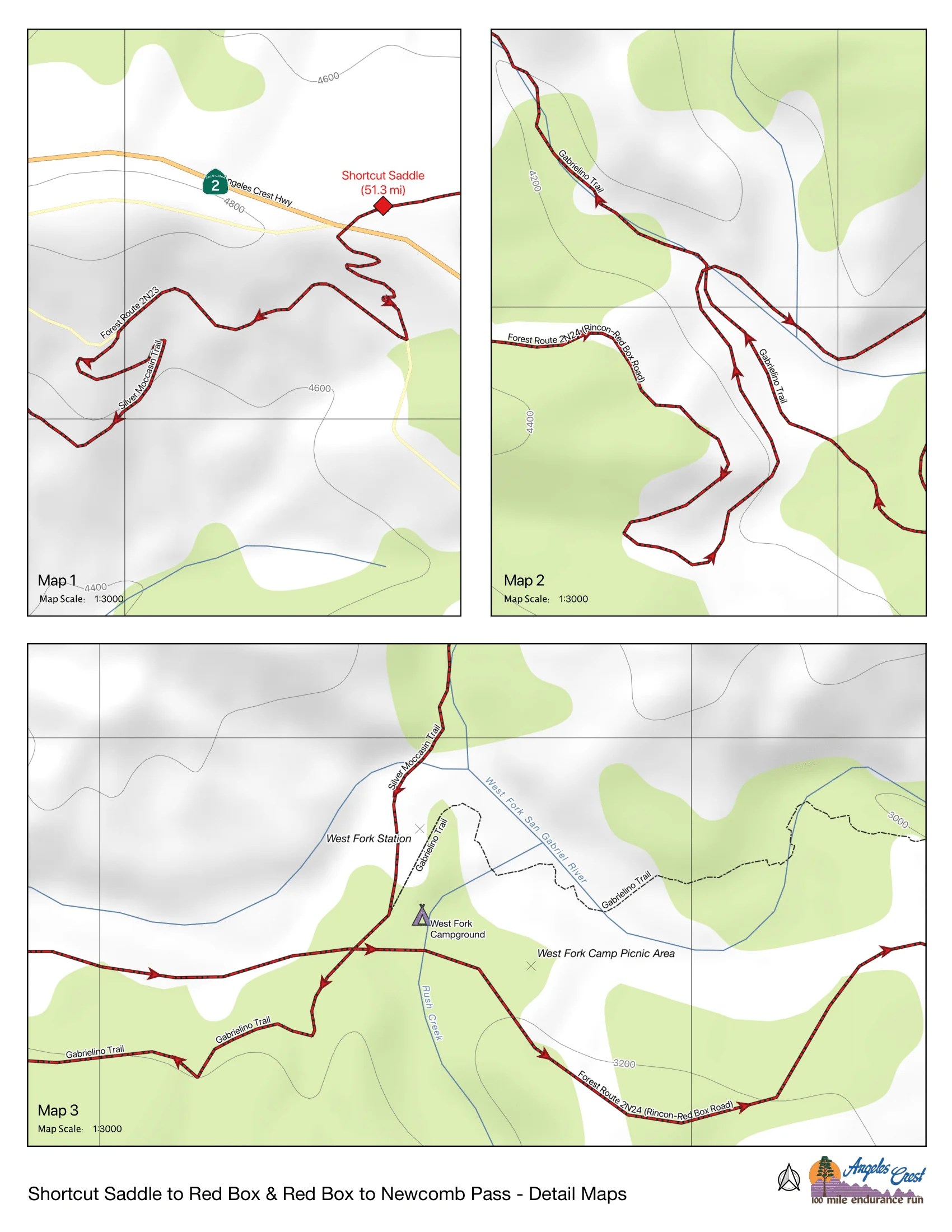 Runners head west on Red Box Rincon Rd, descending 1000’ in 3 miles to West Fork Trail Camp. From there, they climb 1600’ in 6 miles to the Red Box Aid Station at mile 72.4. This segment stays on the dirt road the entire way to Red Box. Do not take the single track.. yet. You’ll hit it on the next section from Red Box to Mt. Wilson.